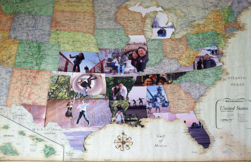 I have a rolled up map sitting in my closet waiting for me to do this with all of my pictures. I haven't traveled a lot yet but, that is one of my life goals! I would love to display my pictures from my adventures this way. If you are a world traveler and have a ton of pictures from your travels, this is the creative way to display pictures for you!