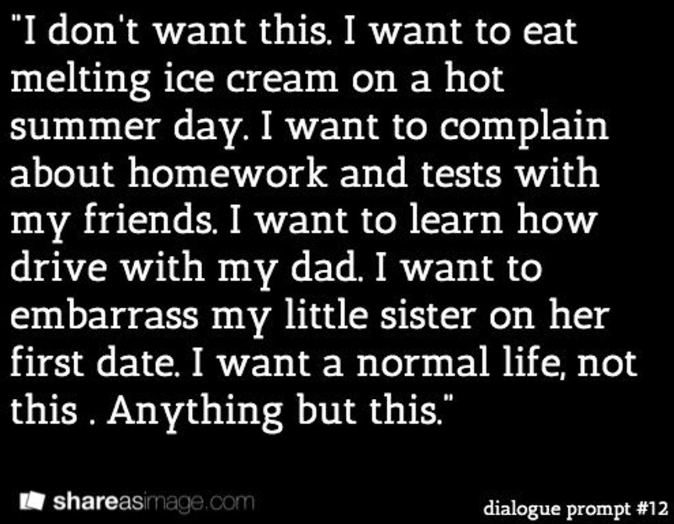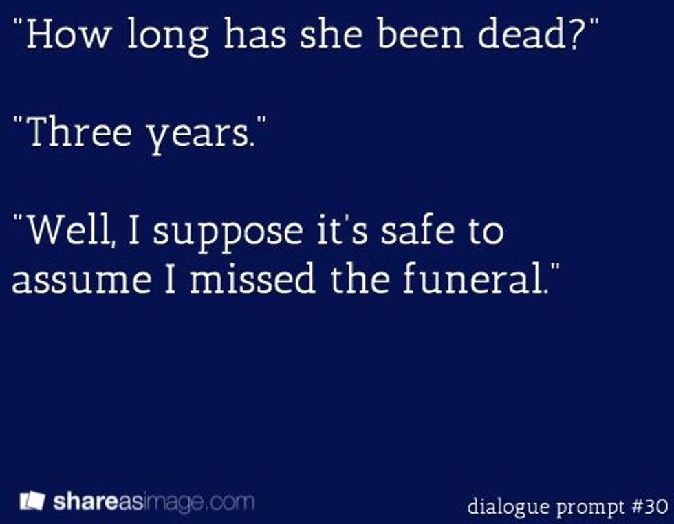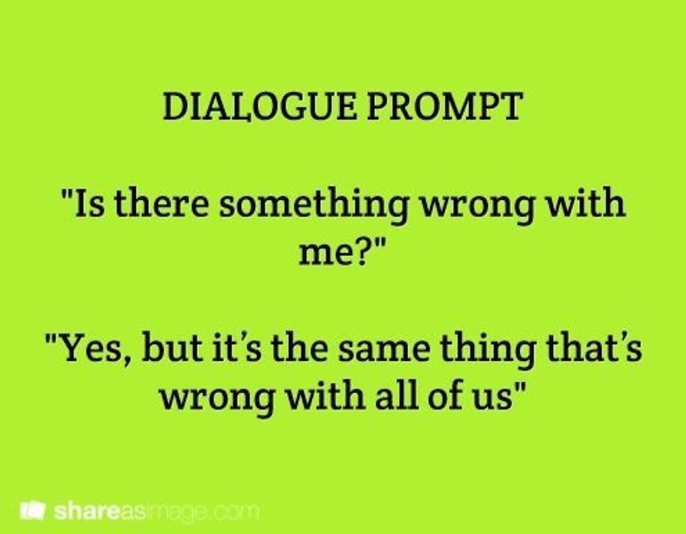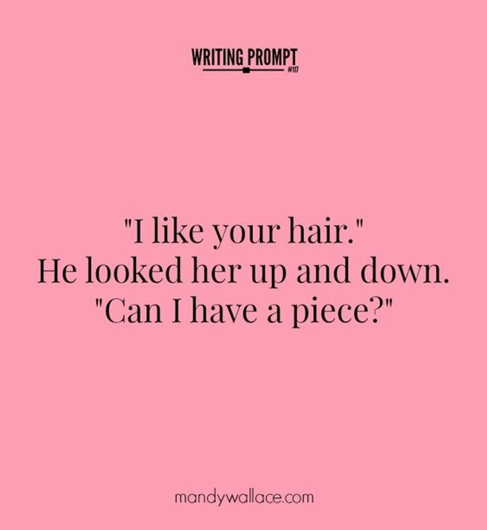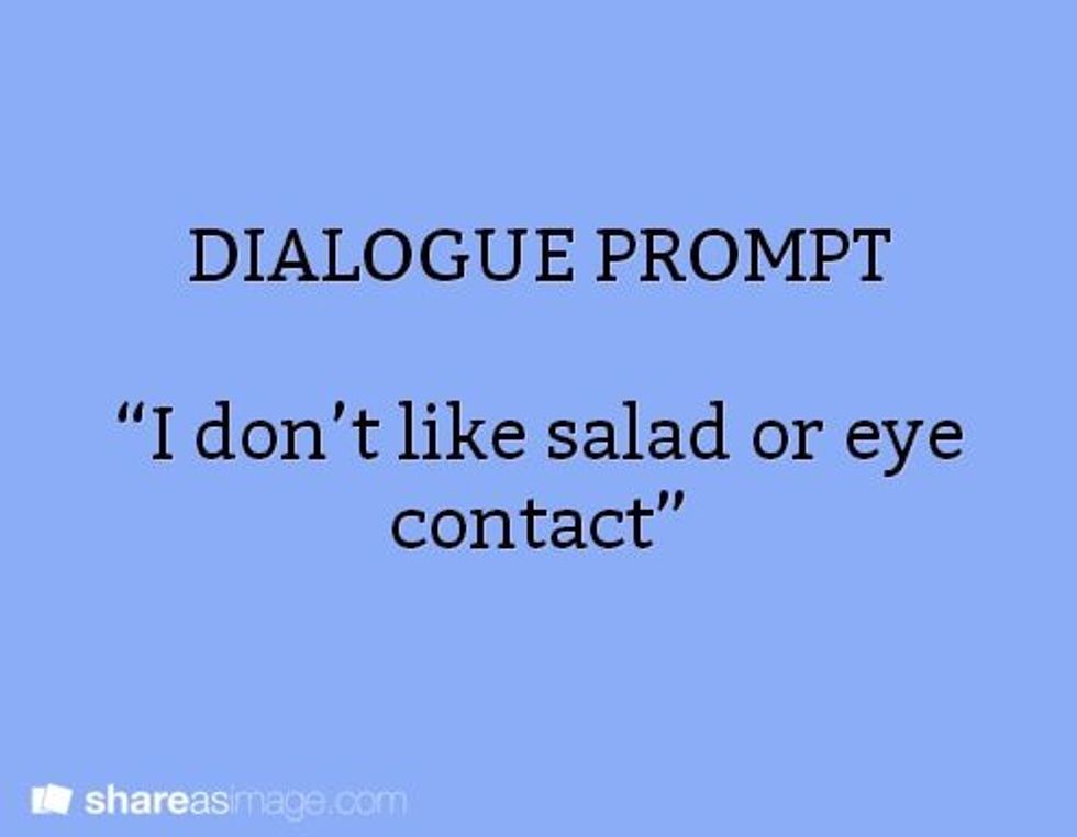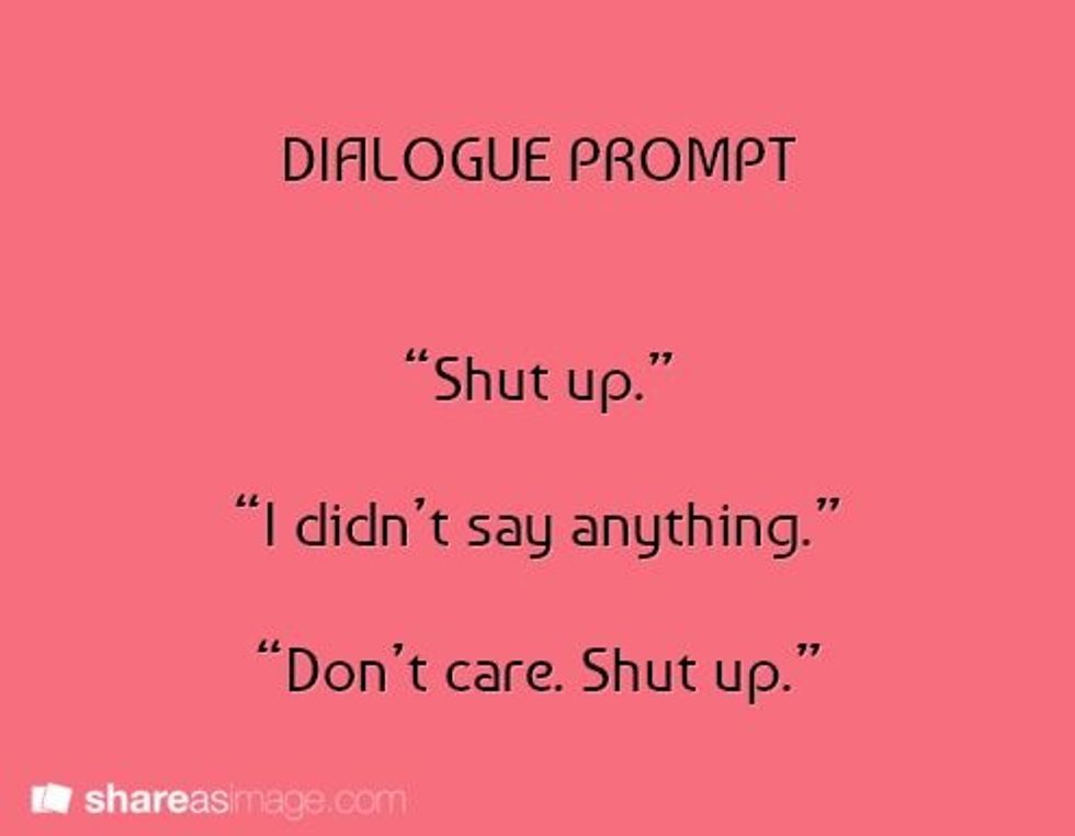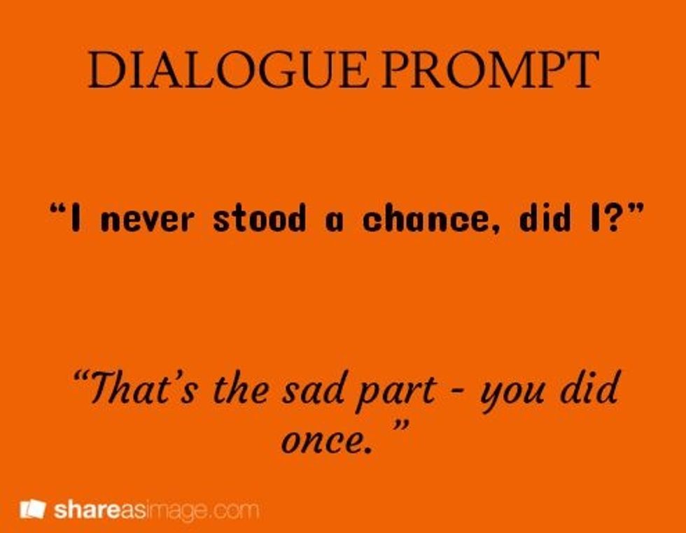 These writing prompts provide a one to two line piece of dialogue or description. These style of prompts are aimed to inspire the deeper meaning of writing. The emotions and the voice of a character. The feeling and sounds of a place. The tone and mood of a piece. Digging deeper than adjectives in front of nouns. You're better than that.