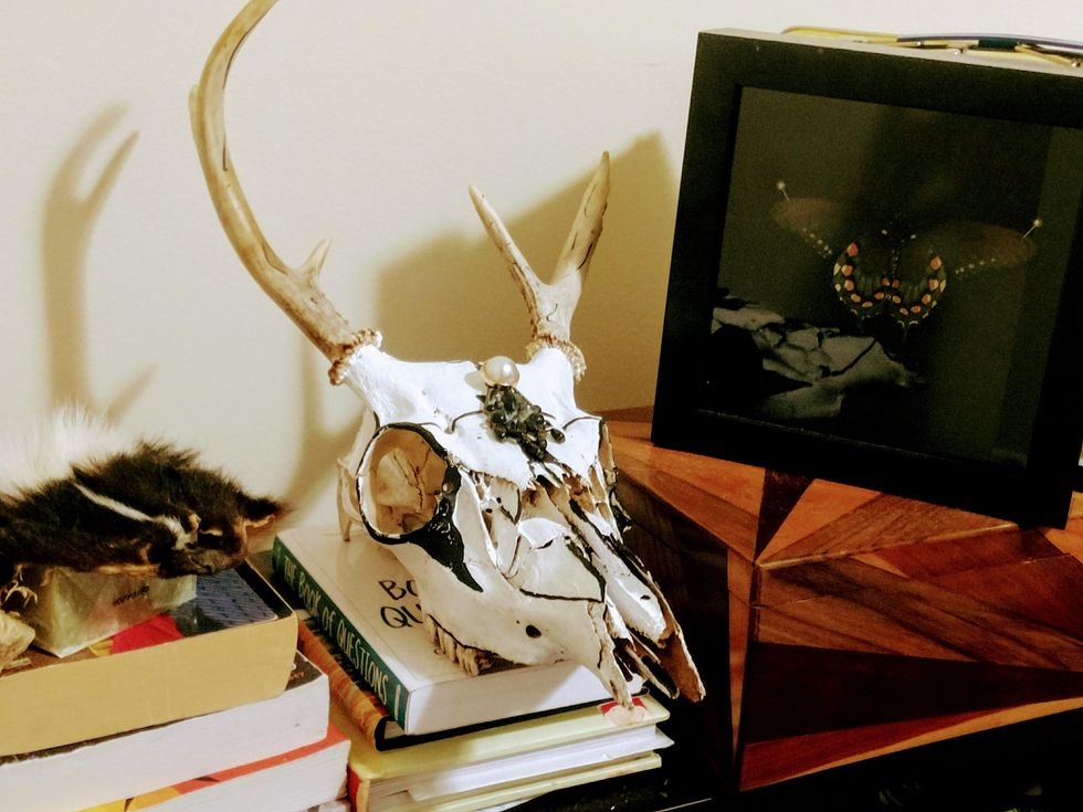 Walking into my college dorm room can be a bit surprising for the uninitiated. Dead insects occasionally litter the dining room table. A deer skull sits on my desk, staring blankly at the room with empty eye sockets; next to it lies a soft mount of a skunk’s face. And my refrigerator and freezer are the current resting places of more than one animal corpse.