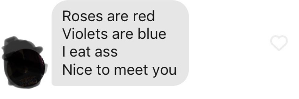 Yes, these are real messages I've gotten from real people, presumably men. Men, if you're really wanting to seem charismatic, this is not the way to do it. No girl is interested in messages like this. We pity you and even despise you. If you say any of these things to my face, I will tase you. Thanks for coming to my TEDTalk.