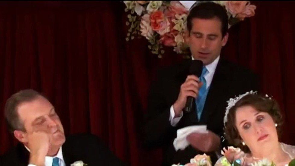 This might be one of his worst moments ever. And of course by worst, I mean it was one of the best ones to watch. From announcing Phyllis and Bob as husband and wife to early to the entire church to, my personal favorite moment, when he revealed to all the guests that Phyllis's nickname in high school was "easy rider". This is definitely a contender for one of his most cringy moments ever
