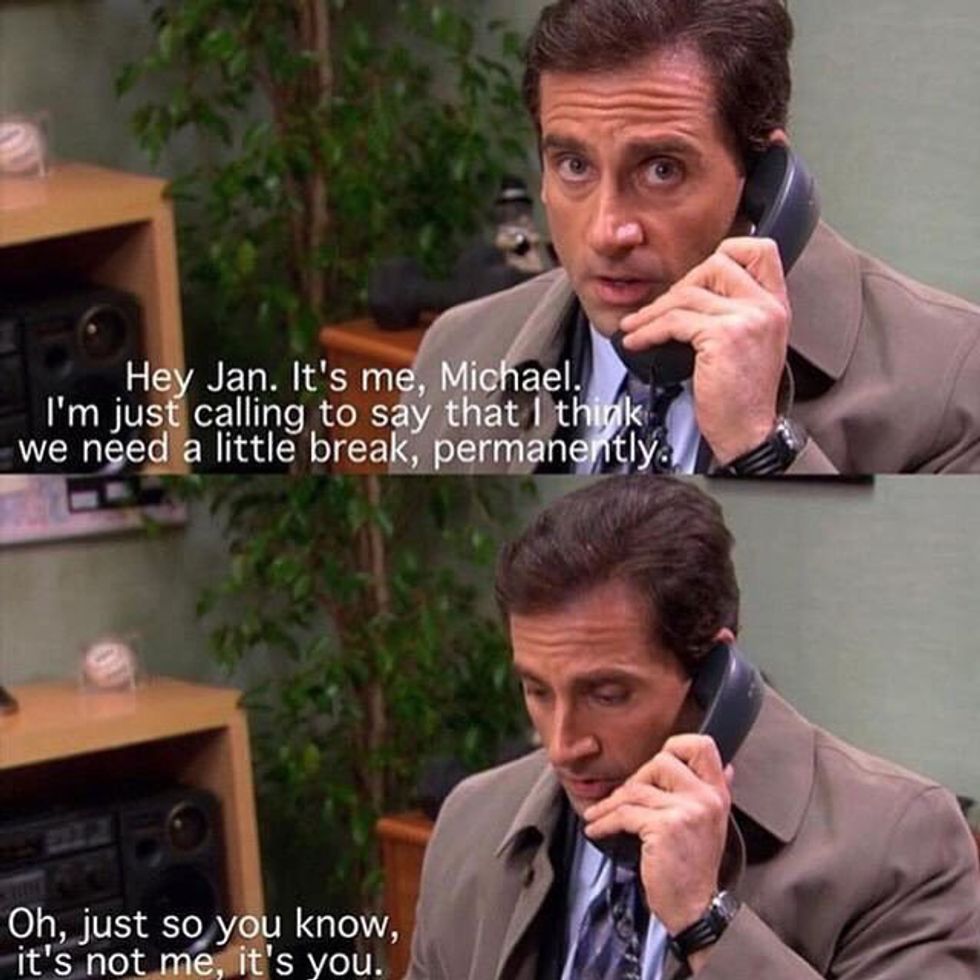 This ones pretty much all in the title. The look on Michael's face as he had to sit there and watch Jan listen to the voicemail he left in which he told her they needed "a little break...permanently", doesn't get much worse than that.