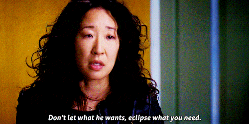 My favorite couple on Grey's is Cristina and Owen. I ship them so hard, but I knew that, ultimately, their relationship would fail. Owen wants, almost needs, kids, but Cristina cringes at the thought. Cristina weighed her options, but made the decision to end everything between them. Not wavering in your wishes in life isn't selfish. It's taking care of yourself, something you have to do before you can even dream about taking care of someone else.
