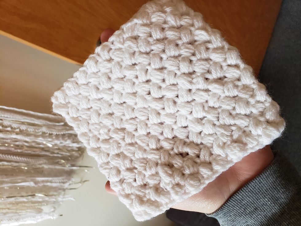 However, then we have attempt three. This is where I actually learned how to crochet, still with the help of my wonderful roommate. This time, I learned first how to make a granny square instead of a regular chain. Granny squares are much harder, but I think by starting with something more difficult I was able to understand the basics much better when I went back to them. My granny square ended up looking like crap, but then, I undid it all and made a funky-looking coaster.