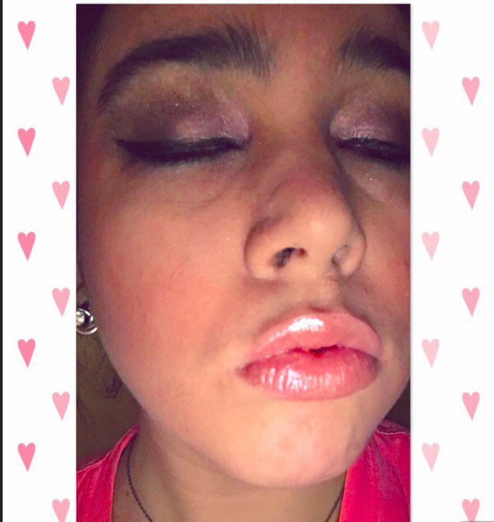 Lips: Rimmel London lipstick in shade Candy 002, and light pink glitter gloss - Sparkle and Shine Victoria's Secret lipgloss.