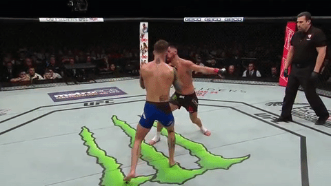 Even the first display of 'swag' provoked a response from Cruz. Dominick responded by gesturing back at Cody before uncharacteristically walking into striking range with his hands high in a defensive posture. Garbrandt used the chance to kick Dominick's legs while the former champ was in a less mobile stance. Dominick fell deeper into debt on the scorecards as the rounds went on.