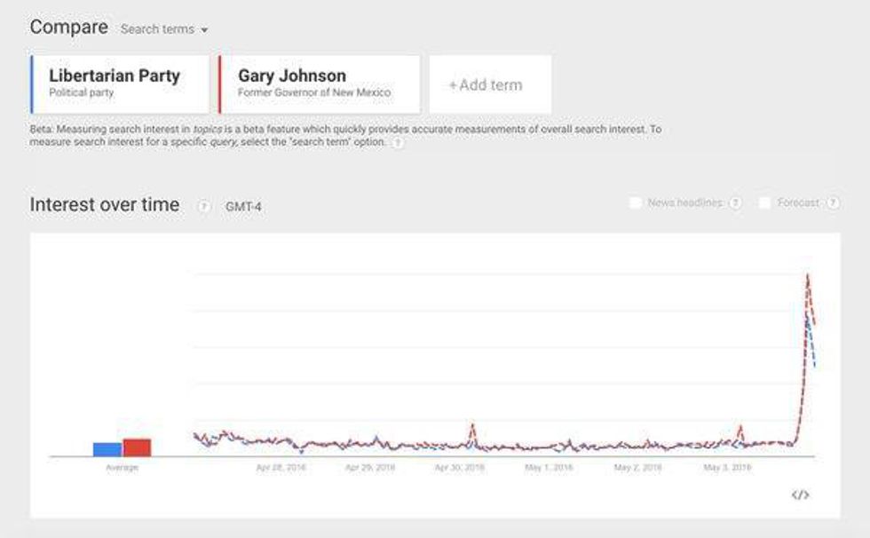 Gary Johnson noted last week on his Facebook page that "a few folks" had been Googling him after Cruz dropped out.