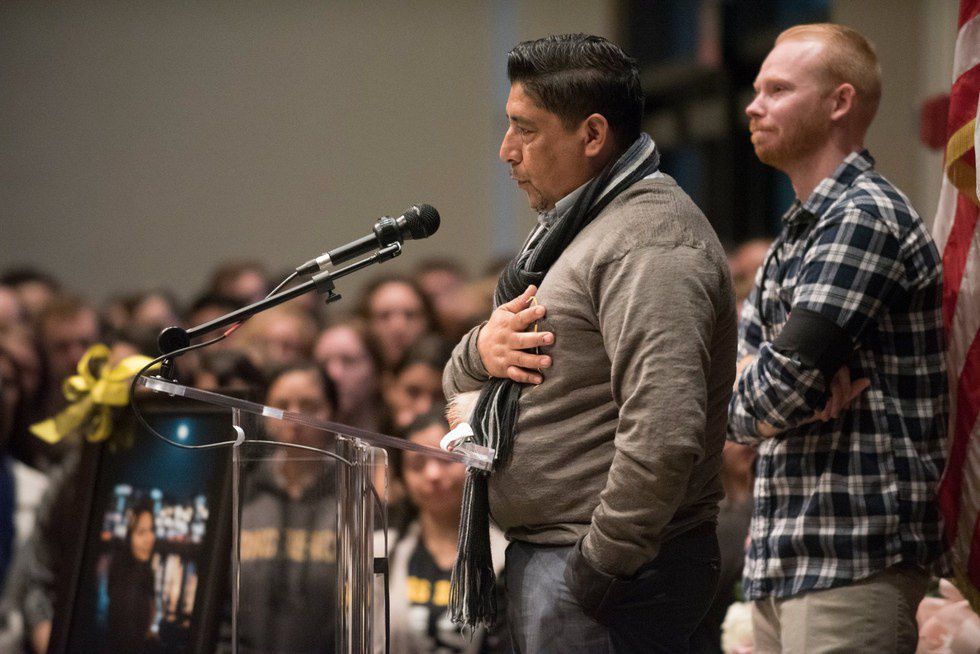 Hundreds of students, faculty, alumni, and mourners gathered together, so many that not everyone could fit into the campus ballrooms where the speakers were honoring Nohemi’s memory. Speakers were placed directly outside of the University Student Union so those in attendance could hear the ceremony, which included testimony from faculty and design students that knew Nohemi, as well as her boyfriend and family.