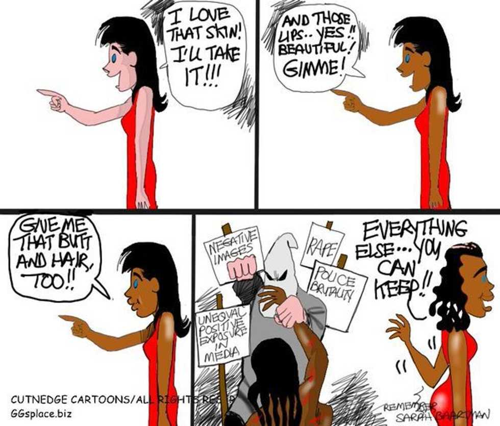 White people keep wearing black culture like a fashion statement while we are shamed for the texture of our hair, robbed of awards and watch as our history is bleached.