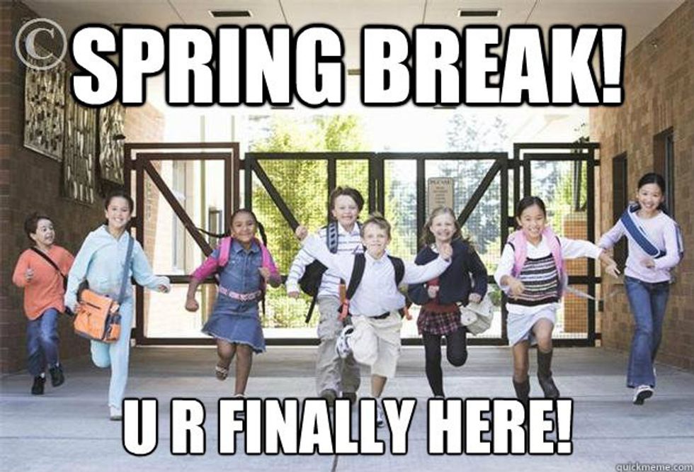 Sure this week will be great. Except, oh wait.. none of our friends are free because they're at school studying for finals, and all of the high school kids will be running wild because they also have break. We can't catch a break. To top it all off, in the middle of May when the weather is beautiful and everyone else is done with school, we will be stuck finishing up our semester.