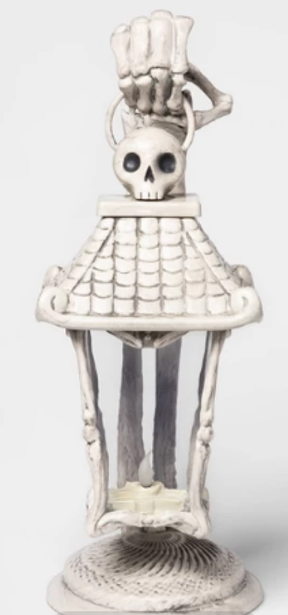 This lantern gives kind of a spooky adventure vibe. Its a great addition to any Halloween theme for $20.