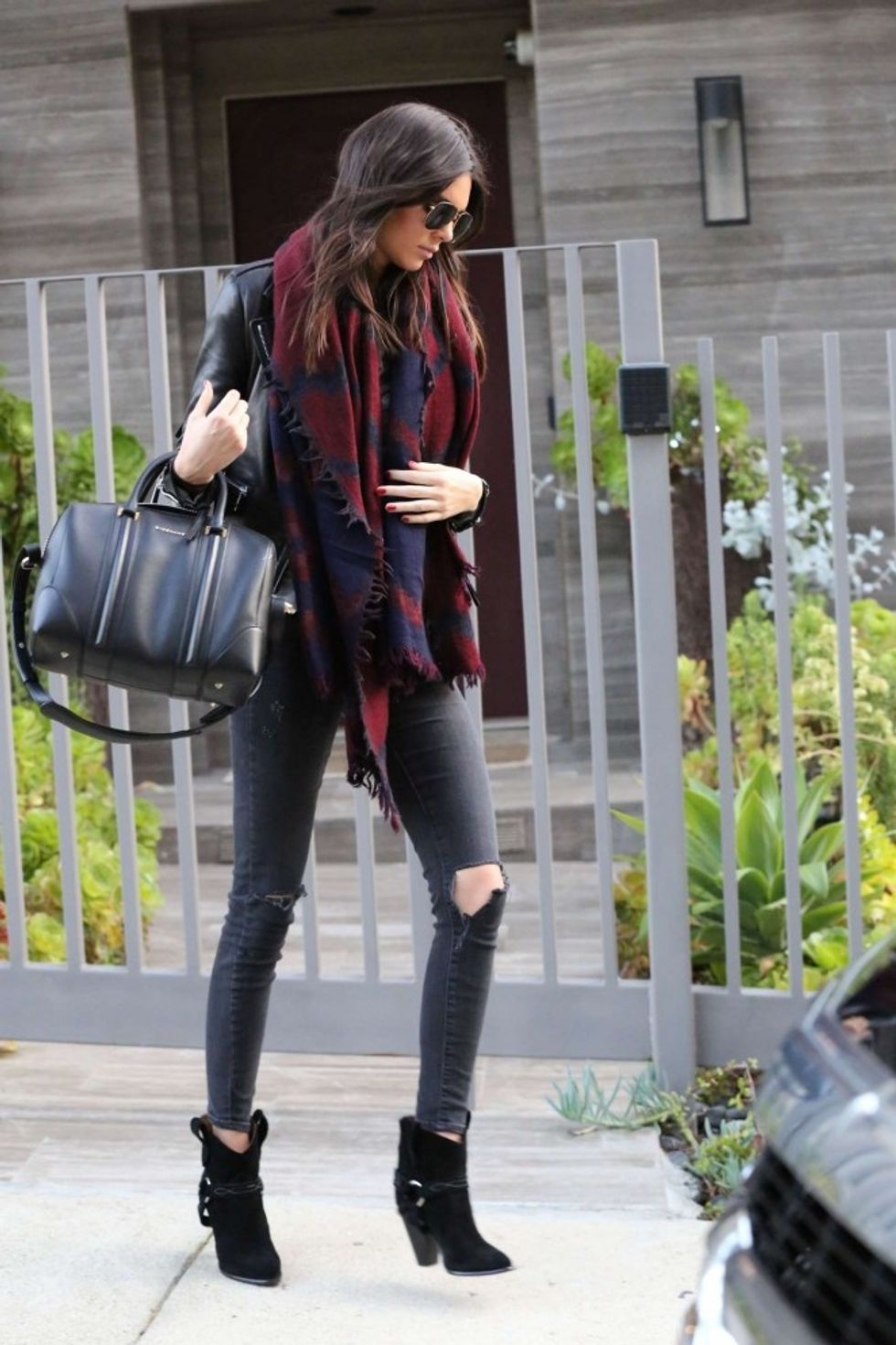 Kim K had the right idea, dressing up a normal t-shirt and cardigan/jacket combo with some bold, oversized jewelry. Statement jewelry also works with collared shirts, dresses, overalls, or pretty much anything you can imagine! Necklaces, earrings, or rings are all easy additions to any cute college outfit idea!