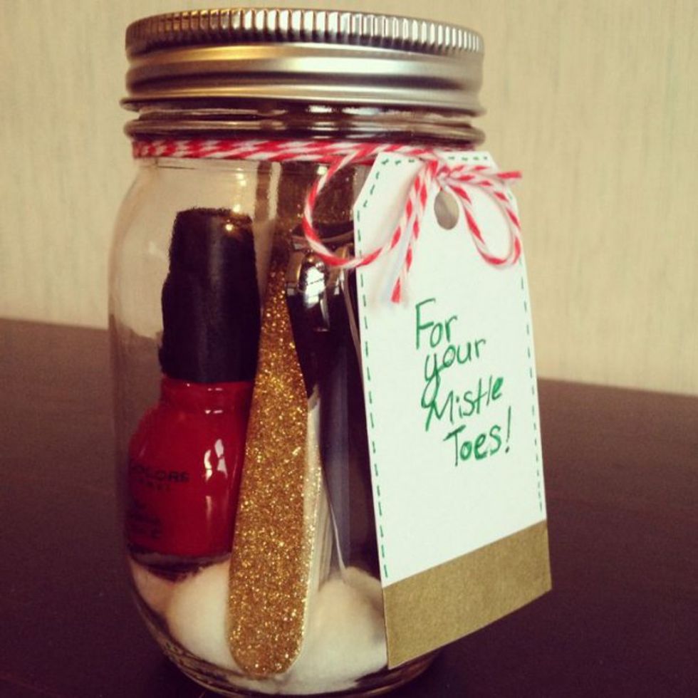 A very cute and cheap idea for a gift! Get a mason jar, a nail polish, and filer and if you have some cotton balls at the house add those at the bottom! Add a cute ribbon or tag and there you are.