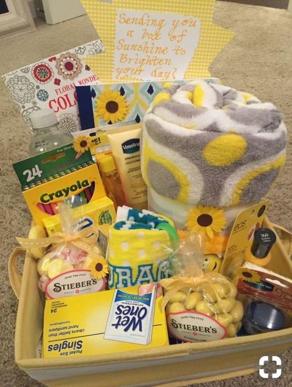 This is such a fun way to bring comfort to someone, especially in quarantine! From coloring books to wet wipes, theses items would be put to good use.
