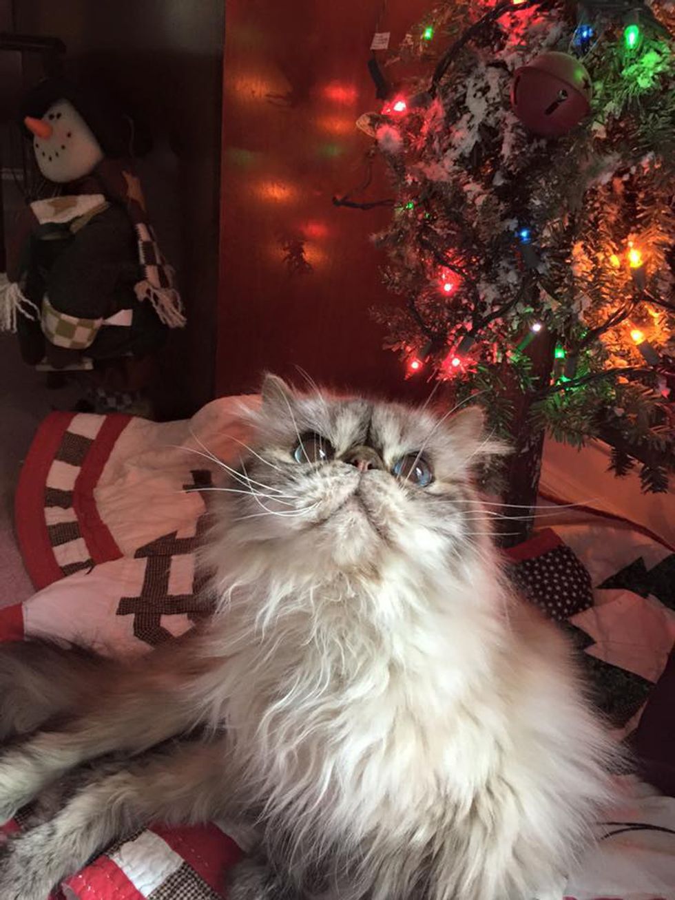 These cats are only a little bit different from Exotic Persians, but there's a difference. Persians tend to have less squished face than Exotics, but every cat is different. The one above is a Silver Persian. He had to eat his food off of a plate because his flat face couldn't fit in a cat food bowl.