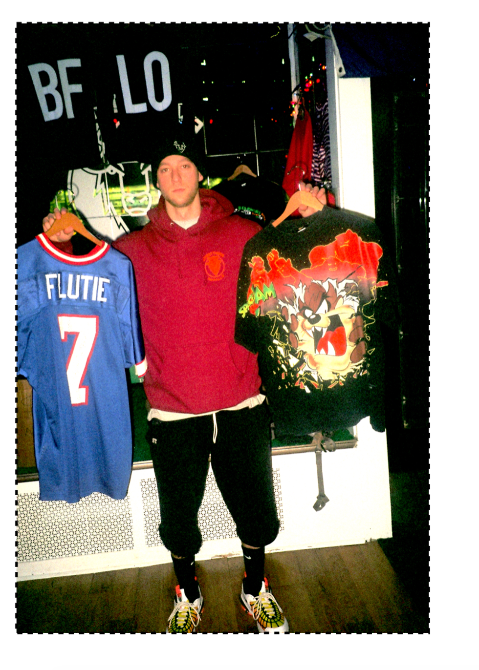 Pacing toward the corner of Elmwood and North street in blistering cold 25-degree weather isn’t my ideal Wednesday night. If you took the all of the Buffalo Bills memorabilia from the 80s, 90s, and early 2000s, combine that with rare finds from streetwear kings Supreme and Bape then add a sweet selection of low-key kicks and add a Pit Bull on top, you have My Cuzin Vintage.