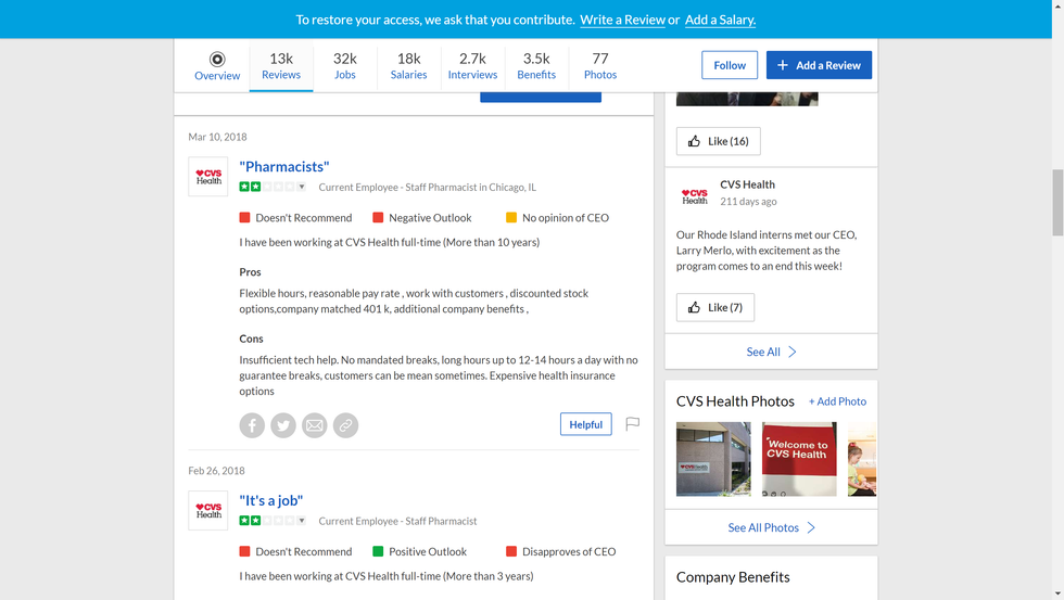 However, my personal bias also led me to discover that this is not just an isolated incident. CVS clearly has a bad reputation when it comes to the treatment of their pharmacy staff and I think these issues should at least become known to aspiring pharmacists, technicians and customers.