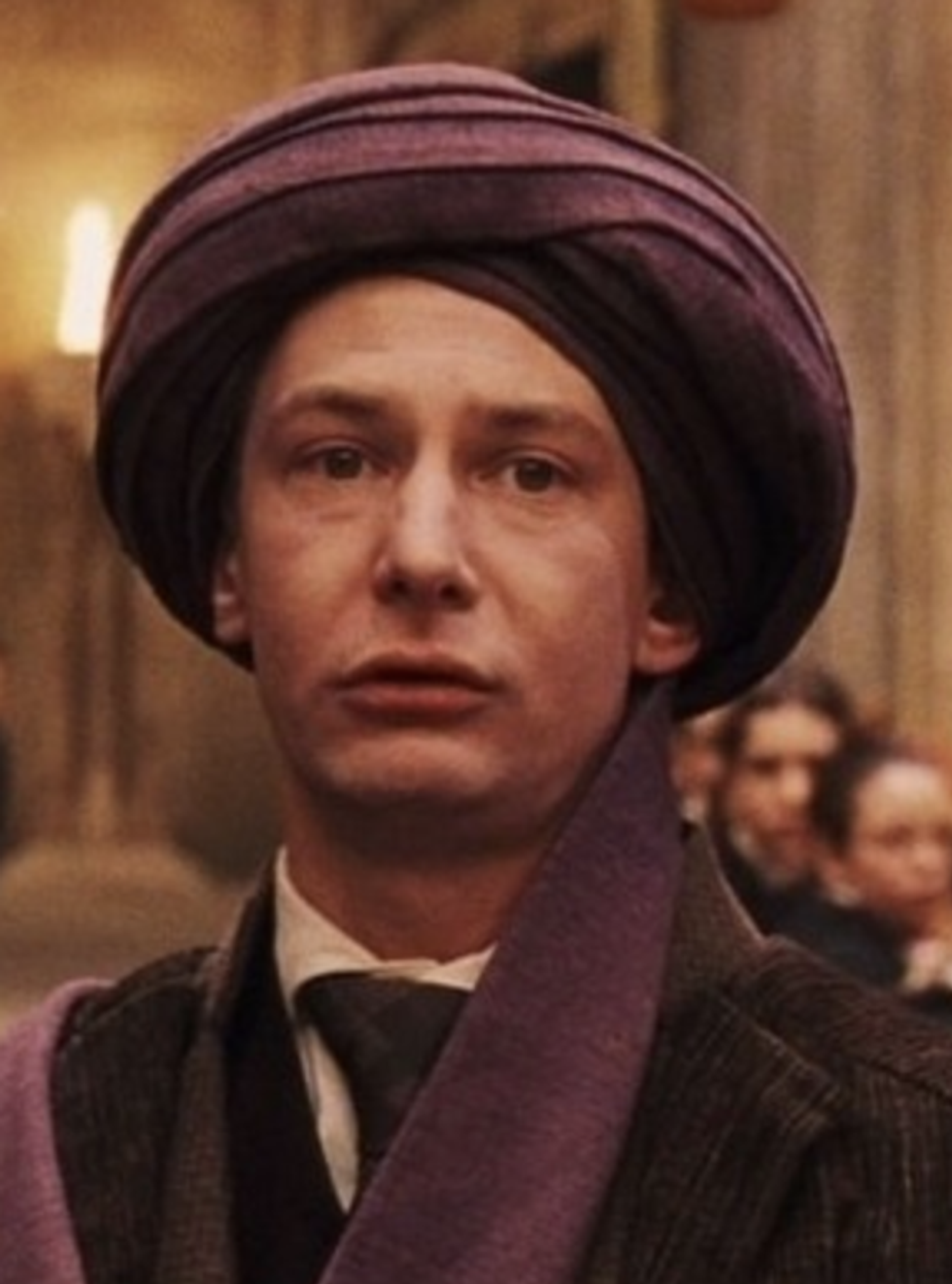 To quote Harry himself, "Yeah, Quirrell was a great teacher. There was just that minor drawback of him having Lord Voldemort sticking out of the back of his head!" Quirrell acts the part of a terrified and cowardly man, yet a decent professor.