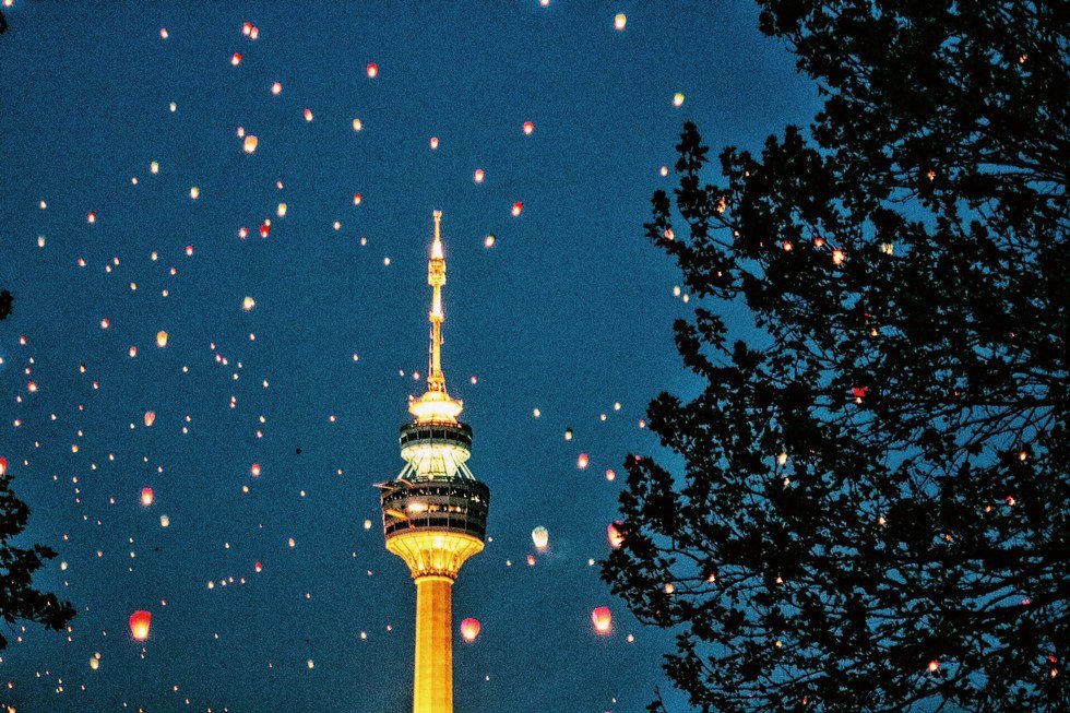 The only thing you are now aware of is the vast darkness above you. A steady stream of small, paper lanterns begins from somewhere ahead of you and trickles up, one after another, to join the other sparks of burning red heat creating a pool in the center of the black expanse overhead. Jutting from within a series of hills on the horizon, Tower 83 strikes brightly and brilliantly into the sky. The lanterns continue to drift and sway, slowly dimming until the light suffocates and quickly fizzles out. You are, again, cast into darkness.
