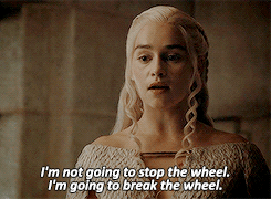 But Daenerys thinks otherwise; she will "break the wheel," she will break this cycle of fighting and take her rightful place on the Iron Throne.