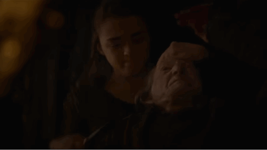 And beloved Arya. I know she's a trained assassin, but they're not giving her descent into madness storyline, even though we've seen her kill many characters, sometimes even with a look of sheer delight. Sansa watched Arya kill Baelish, just as Daenerys watched Drogo kill Viserys.