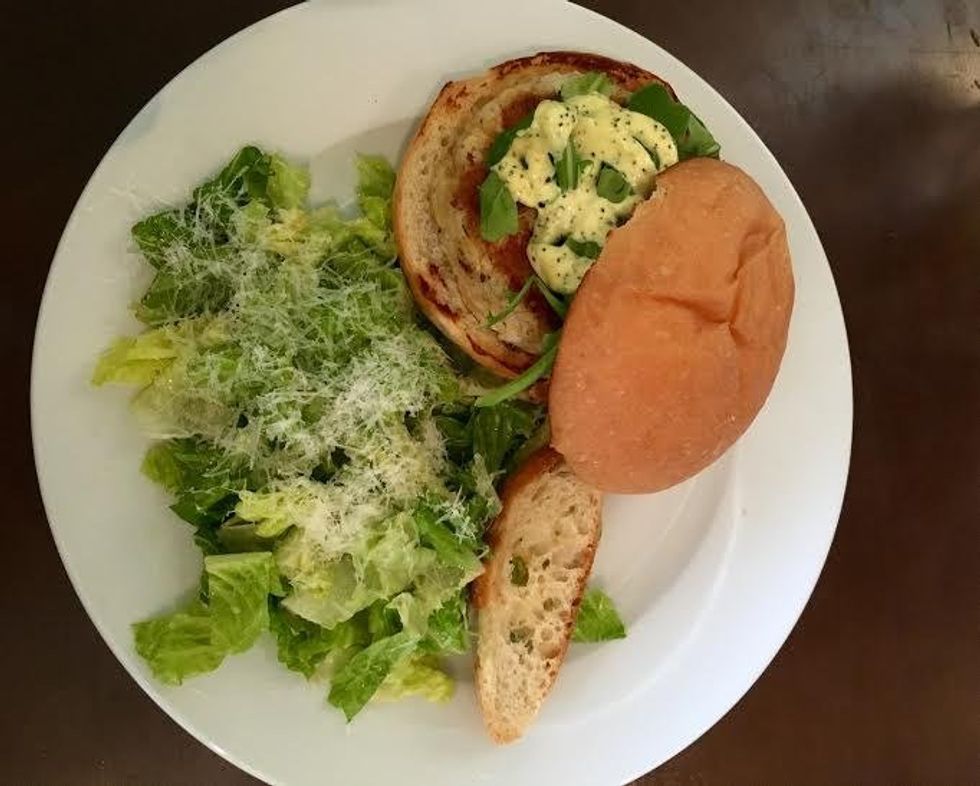 For my dinner on other visits, I have often chosen the Crab Cake Sandwich with a side Caesar salad. The crab cake is full of lump crab pieces and is topped with lemon cracked pepper aioli that complements it perfectly. If you're not in the mood for a salad, they offer other tasty sides such as Maple Roasted Sweet Potatoes, Grilled Asparagus, Chickpea Salad among many others.
