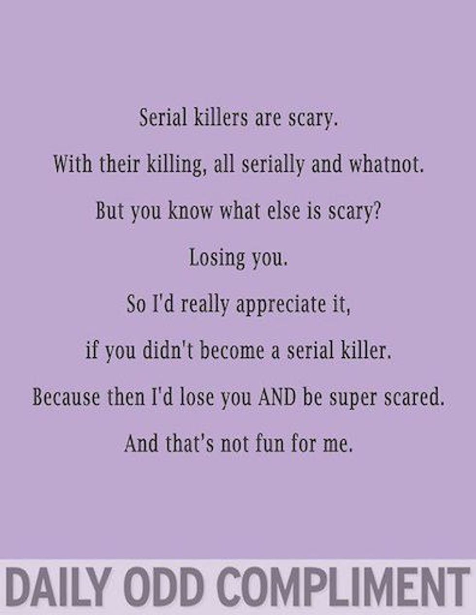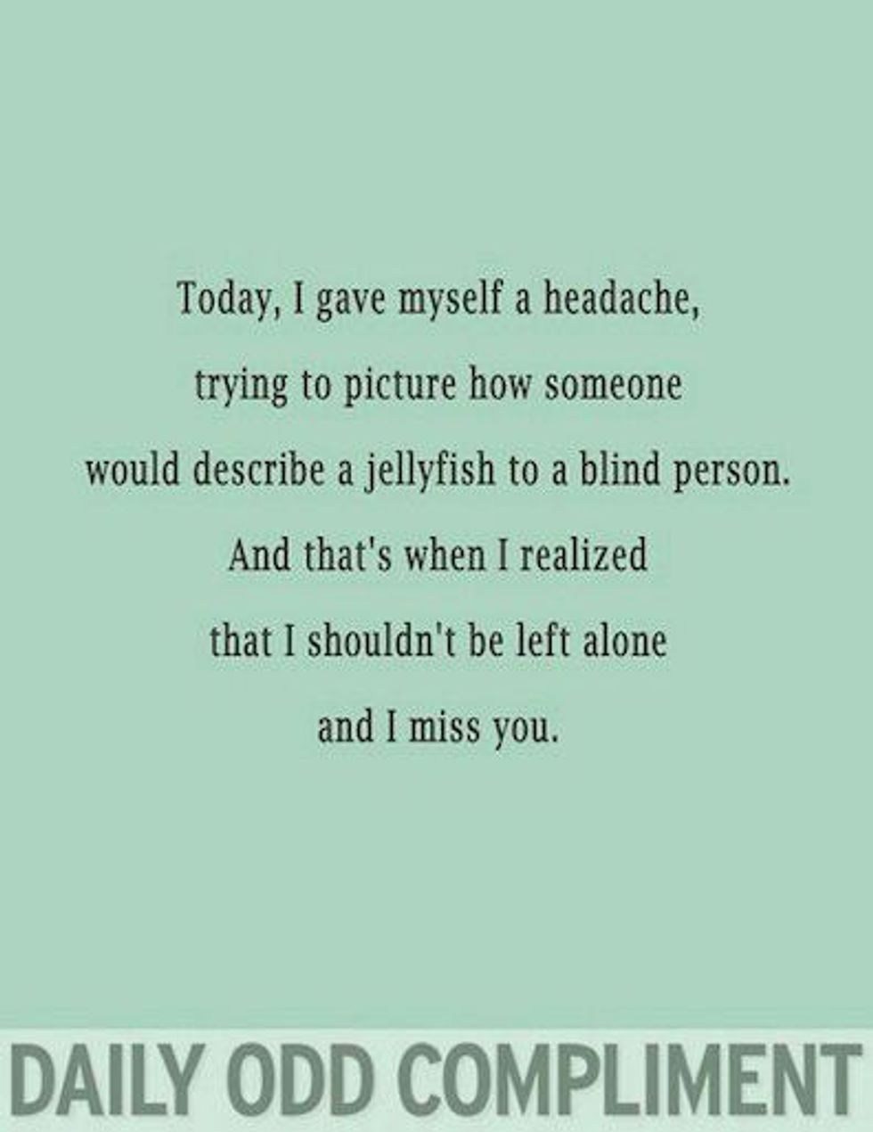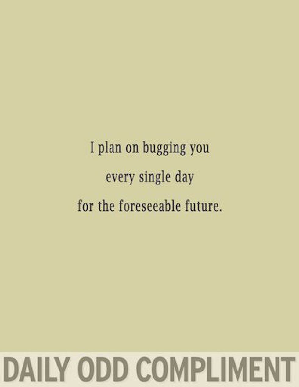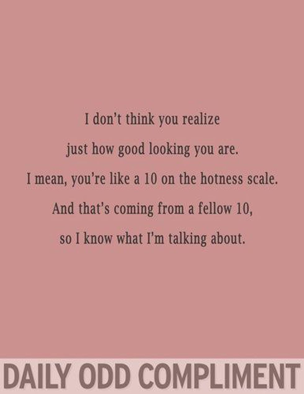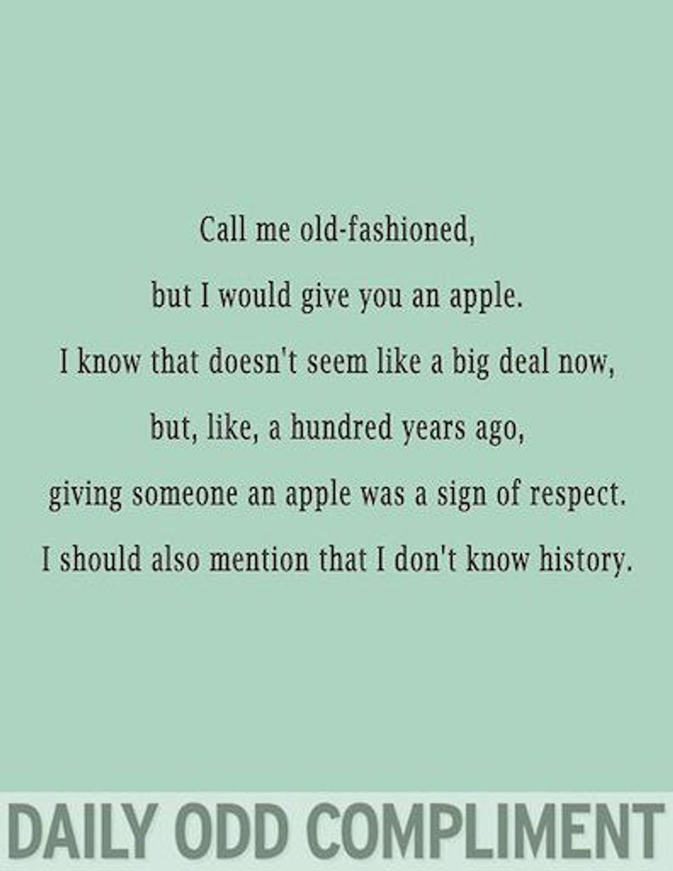 If you've never heard of a "daily odd compliment" before, you've been missing out on something great. A "daily odd compliment" is a weirdly relatable nice thing that you can share with anyone you know. I first read one of these a couple weeks ago and I thought they were the greatest thing ever. So here I am writing about them. Here's a list of "daily odd compliments" for everyone in your life. If you're looking to find more "daily odd compliments," they can be found using a search on Pinterest, Tumblr or Google.