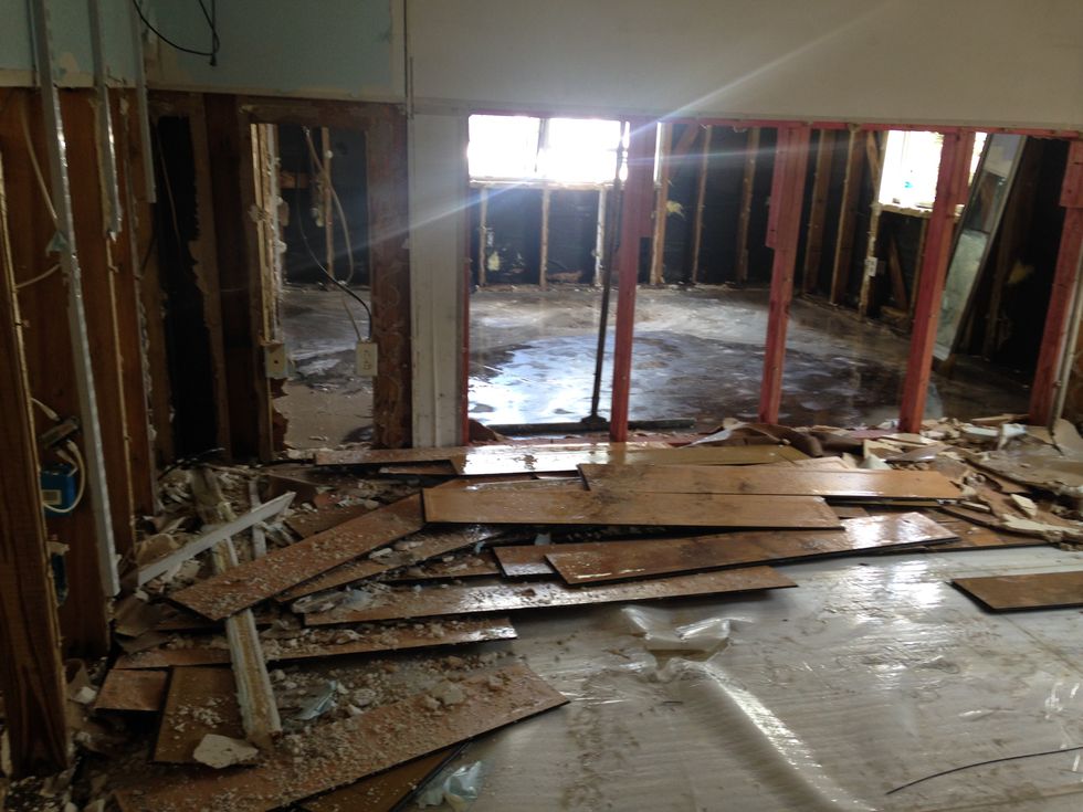 The next few days, family and friends came together to help clean and take out everything that was water damaged. This meant absolutely everything, including the wooden floors and walls.