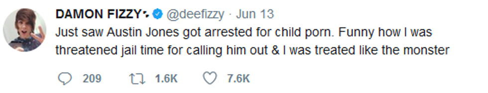 This isn't the first time he received negative feedback on a situation he spoke up about. Other youtube stars like Bryan Stars and Sam Pepper have done their own bad deeds and yet Damon trying to expose the truth was the only thing people frowned upon. More recently, Austin Jones was charged with 2 counts of child pornography after more girls came out, claiming Jones had forced them to send explicit content videos. If only people had cared enough back in 2015 to do something about Austin Jones, so many other girls may have never had him take advantage of them. Many made the comment that Damon had "callled it" two years ago. Unfortunately, this was true. It's sad that so many people care more about money than the safety of young teenage girls.