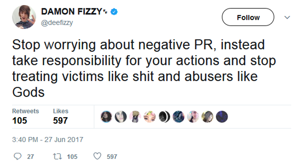 Despite the negative attention that has been brought to Damon for speaking out against the wrongdoings of online stars, he still continues to do so, and that's why I respect him and continue to follow him.