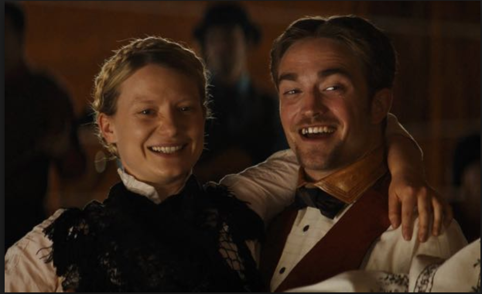 Robert Pattinson plays a southern businessman named Samuel Alabaster in search of rescuing his fiancée Penelope, played by Mia Wasikowski, from her savage kidnappers. He recruits minister Parson Henry, played by David Zellner, to join him on his travels so they can he and Penelope can be married immediately following her escape.
