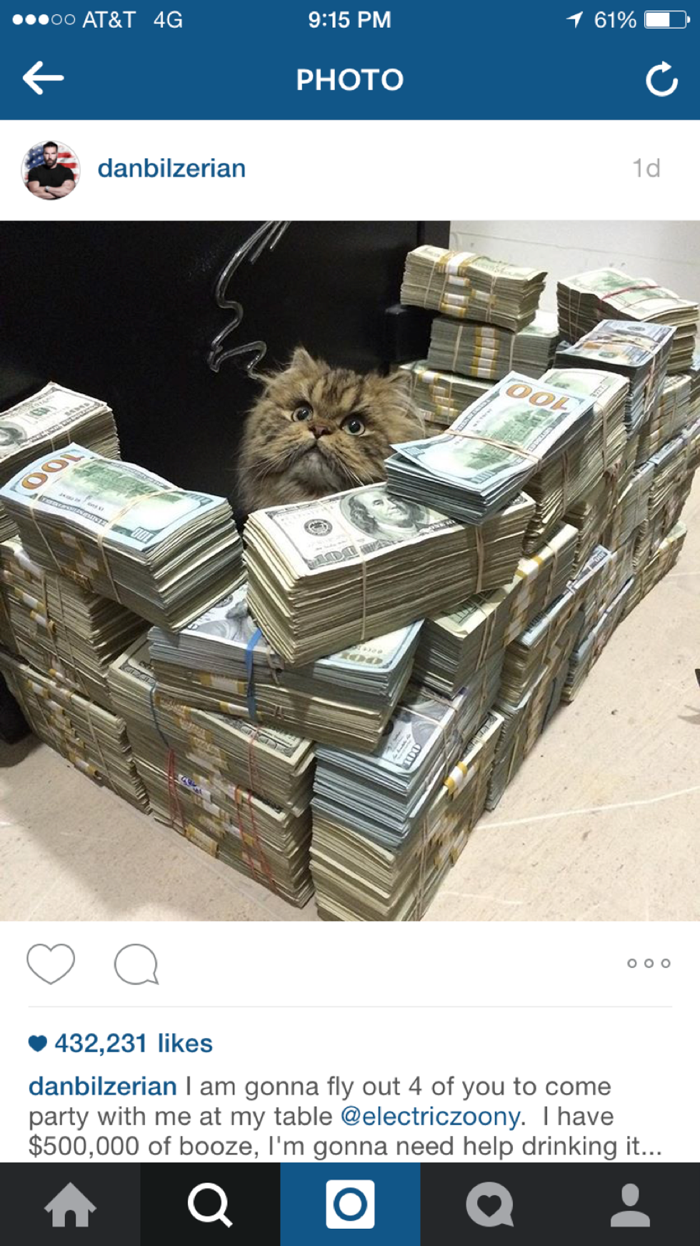 Bilzerian is showing people exactly who he is. His pictures of lavish parties at the Playboy Mansion show he is someone who just likes to have a good time, who doesn’t? His shots of piles of money show off his wealth. Money is merely an object to him. I see Bilzerian as a symbol to show people that they can express themselves how they want and to not think anything about what people say.