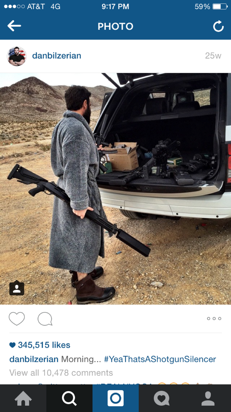 The absurdness of each post leaves followers never knowing what to expect next. Each post seems as though it could be a poster on an average teenager's bedroom wall. People stop to look and either think of the images as offensive, objectifying, or awesome. There is an old saying that "any publicity is good publicity." As I do not personally know Bilzerian I can objectively say that it doesn’t appear to matter what people think of him. As a matter of fact, each picture he posts seems to send the message he doesn't care about anything at all.
