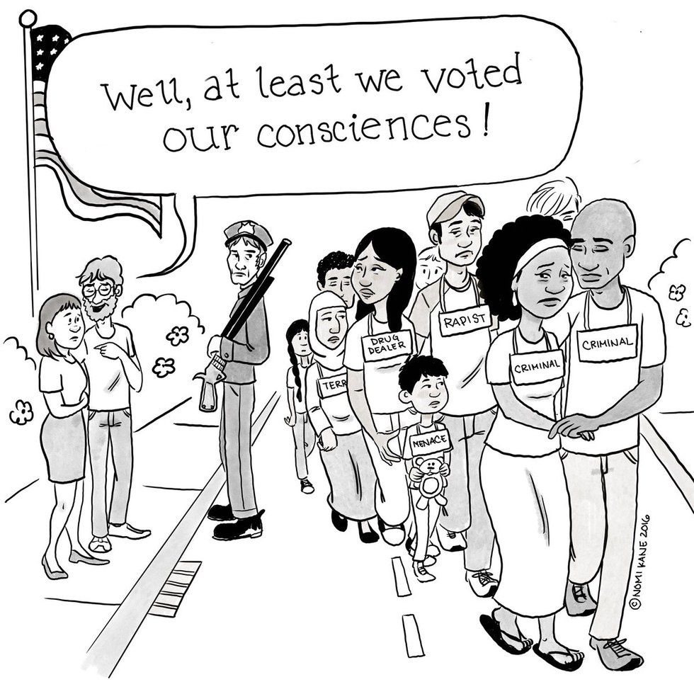 Turning to those considering a protest or non-vote, disgruntled with this election as a whole. Me too, guys. However, I would implore those of you resistant to the obvious choice of the election to consider your privilege. What a Trump presidency would mean for minorities of any kind supersedes any qualms you may have about Hillary Clinton, and not acknowledging that is ignoring the role that a president does play, and likely the freedom of thought, allowed by the comfort of your own privilege. Are you mad that Hillary sounds more and more like Bernie? WHY?! She is listening to what the people want, which is what a politician is supposed to do. Furthermore, a unified blue vote is imperative to move past this nightmare, and set the stage for the revolution that we all desire to unfold. This is not a time to pout or stand idly by; strategic movements forward are paramount, because somehow we are here. Remember what Bernie said, “This is not the time for a protest vote." Our wheels are in motion, but we still have to get this thing out of the woods.