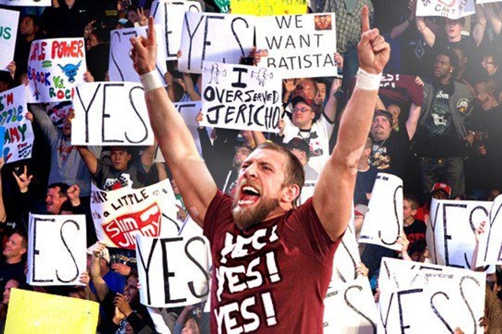 How does this story tell how Daniel Bryan and the Yes Movement Affected me? The reason he affected me was many different reasons. For one, he showed me that if you try really hard, you can actually do anything you want. He also showed me that you can prove to the world that you can do something that others think are impossible for you. However, the main thing he did for me was he gave me my love for the WWE again and also gave me something that I could enjoy with my Girlfriend. For the longest time, I never thought I would love wrestling ever again just because of the fact my Dad had left me and it wasn't the same to me if I wasn't watching with my Dad. However, one man made me realize that I could love watching WWE again. He was so much fun to watch in the ring and to me he was a true inspiration. Daniel Bryan not only gave me my love for WWE again and something to enjoy watching with my Girlfriend, he also showed me that if you work hard, you can accomplish just about anything. Even though Daniel Bryan has officially retired from inside the ring wrestling, he will still be a man that I look up to and one of my all time favorite Wrestlers. I thank Daniel Bryan for everything that he has done for me and the entire WWE Universe and also everything he has shown me.
