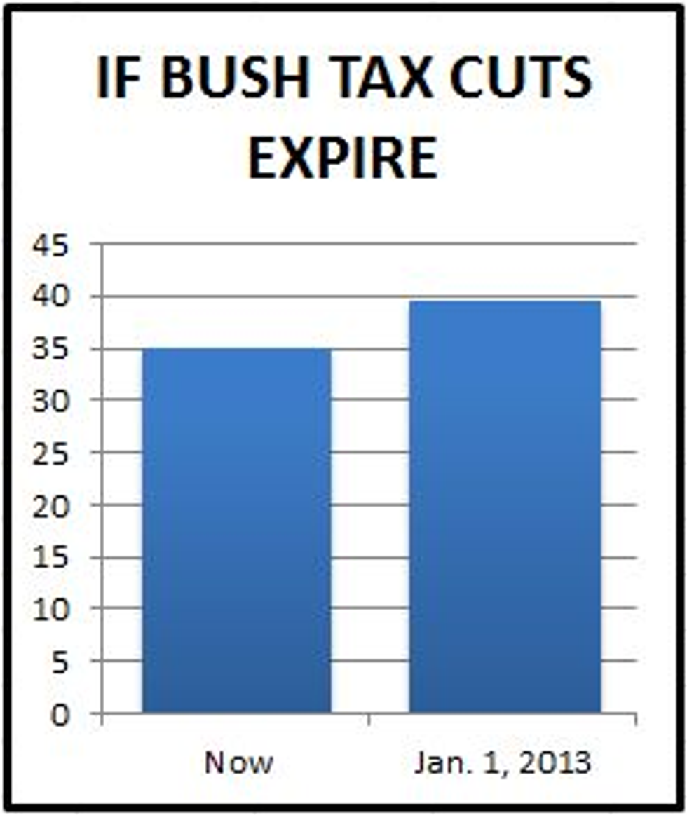 Fox Business' Cavuto displayed a graphic showing what the wealthiest Americans in the top marginal income tax bracket would pay if the Bush tax cuts were allowed to expire. The chart exaggerated the increase, which would go from 35 percent, the current top rate, to 39.6 percent – less than 5 percentage points: