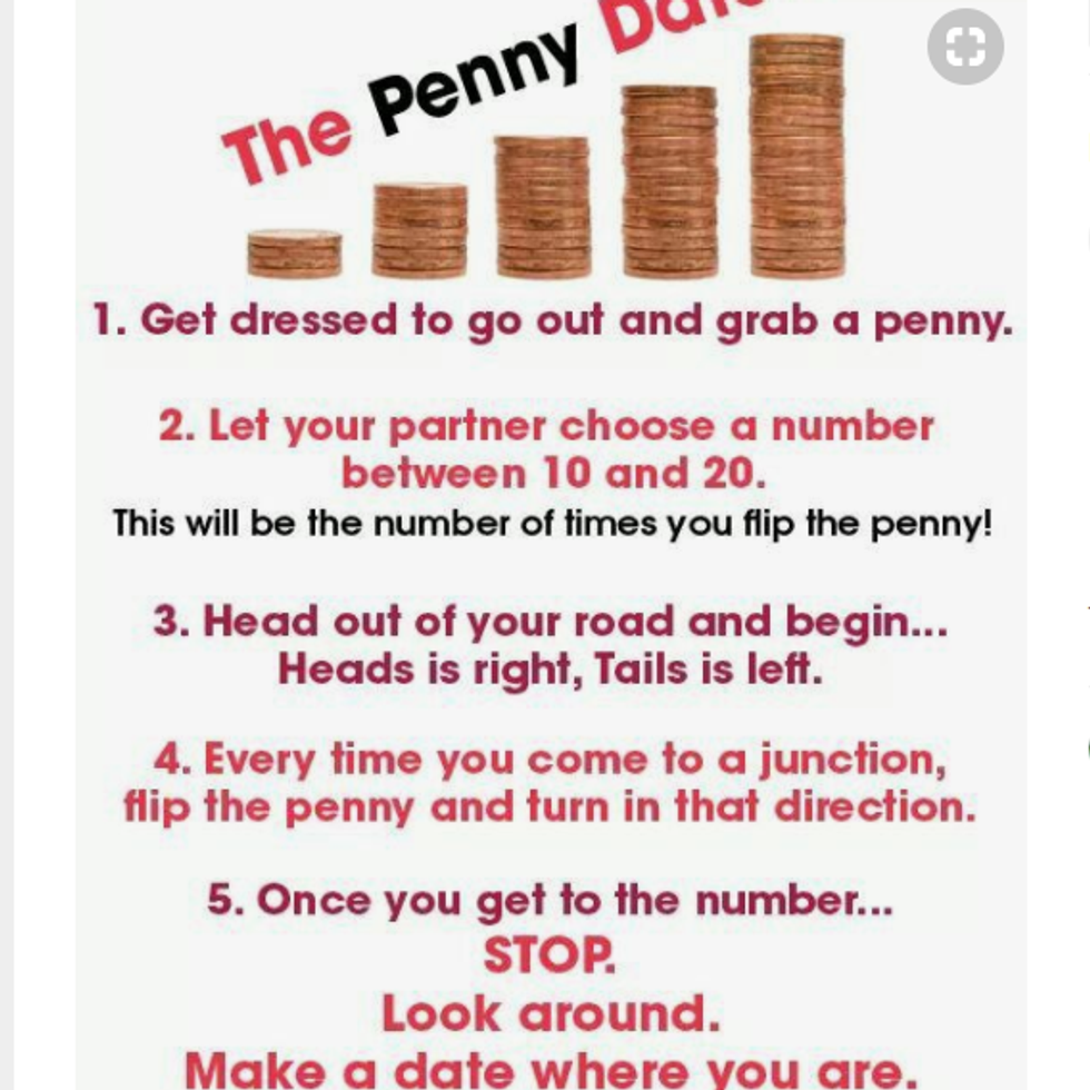 This isn't a specific date but it could be super fun. Get dressed up to go out but maybe also take a comfy set of clothes. Pick a number between 10 and 20 and that will be how many times you flip the coin. Whenever you get to an intersection flip the coin heads turn right and tales turn left. Do this until you reach your number then stop. Look around and make a date wherever you are.