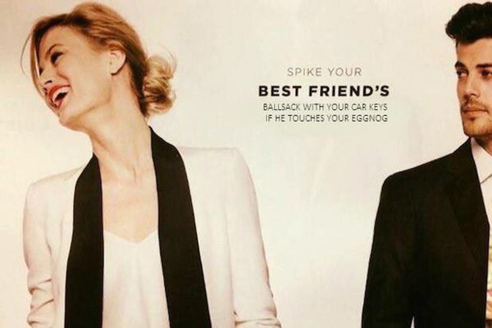 Last week, Bloomingdale's released their holiday catalog with an advertisement that countless social media users claim is perpetuating rape culture. The ad pictures a male and female standing near each other and states, "Spike your best friend's eggnog when they're not looking." Within 48 hours, social media voiced their outrage and called out the company for their controversial ad.