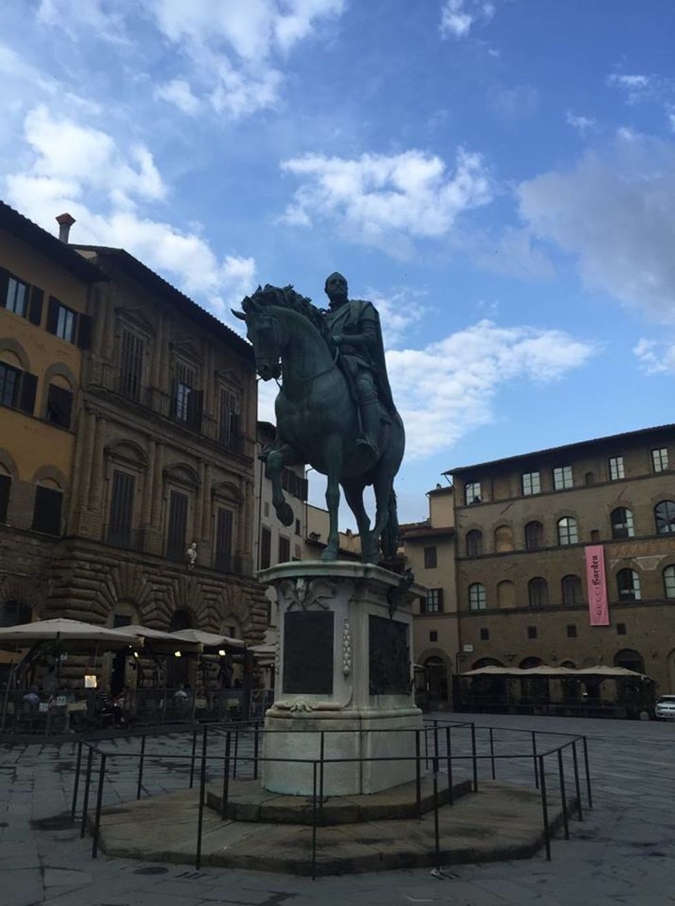 Soon after we got to Florence, we put our luggage in the hotel and we were off to explore Florence. We went to a small town square and ate and met up at the church that was in that area. After this, we saw Pitti Palace, where there is a secret passageway lining the town where the chief could walk. The street that Pitti Palace is located used to be lined with butcher and leather shops, making the town smell unpleasant. The chief did not like this so he changed these butcher shops into jewelry shops where he was able to purchase whatever jewelry he pleased while it also did not smell up the streets.