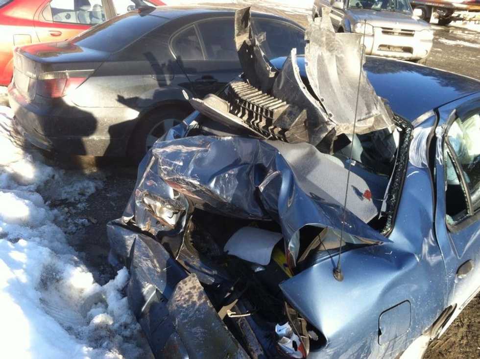 I woke up eventually with my parents around me. I began to laugh as a strange relief that I was alive and then I began to cry. I told my mom that I thought that was it, I thought I was dead. I never want to tell my mom those words again. I never want to see my parents in the pain I caused them that day. My dad lectured me on just how lucky I am to be alive and then showed me pictures he took of my car (the one included in this article). I couldn't believe just how lucky I was to make it out. I walked away from that day with several stitches and staples in my head, and a really bad back injury that lasted many months. I walked away almost completely unscathed.