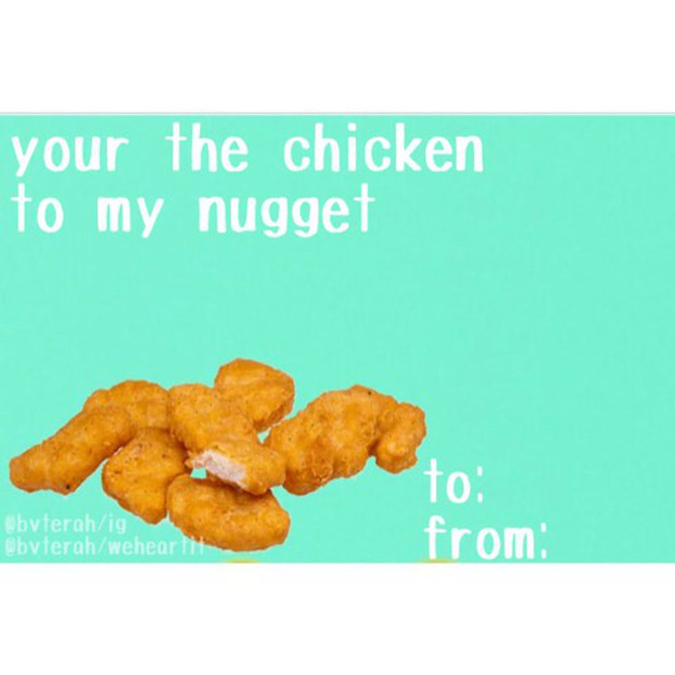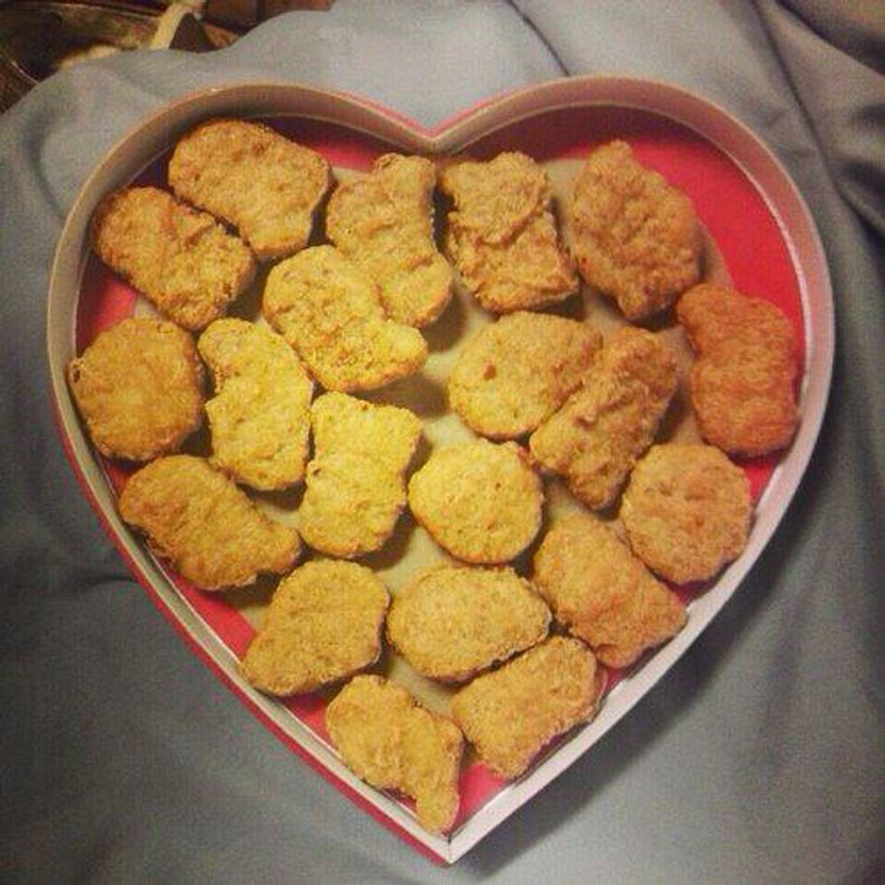 Want to know what's better than a heart-shaped box filled with nuggets? Nuggets that are shaped like hearts. This, in my opinion, is the most beautiful thing I've ever seen.