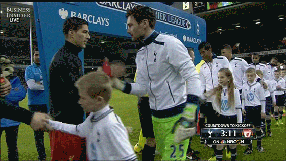 Wishing the other team good luck before the game and you see your best friend... or an enemy.