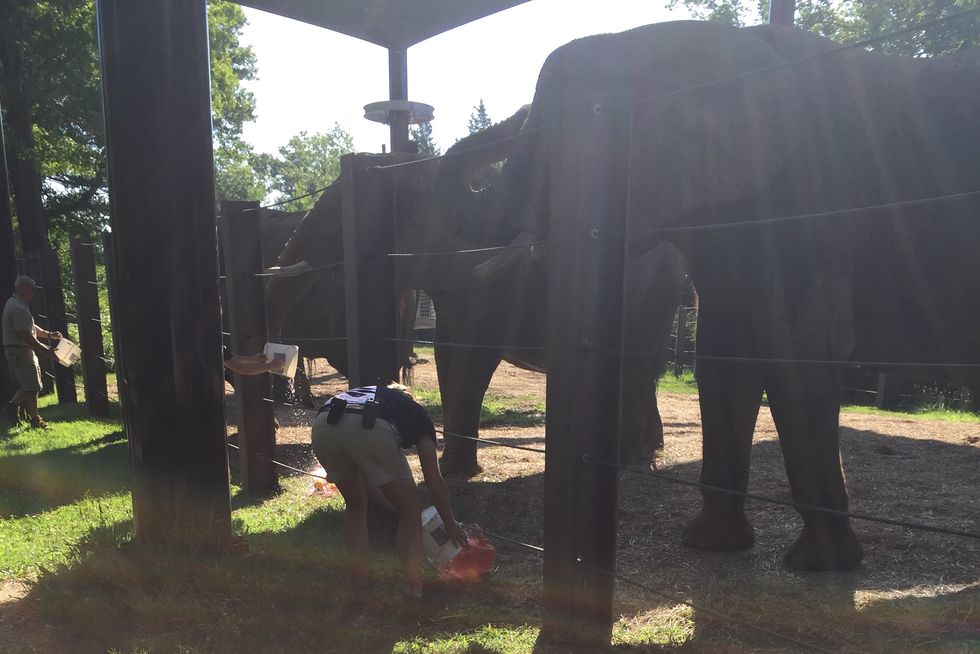 The middle of the day is the time to do anything and everything that can be done before having to get ready for night time preparations. Weekends and summer time usually have daily keeper chats which can include interactions with the animals. Nonpublic areas have to be cleaned. For areas that have yards, they have to be maintained through raking, weed waking, and filling in any holes.