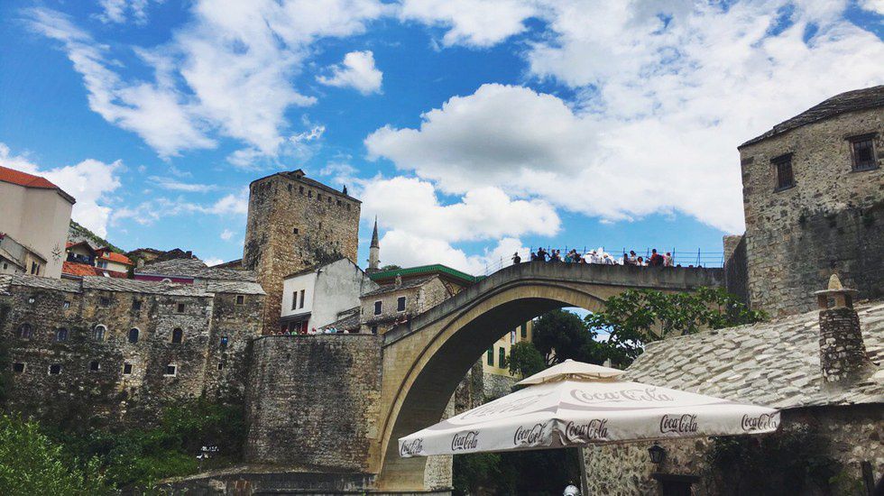 On both sides of the bridge there's a string of shops, or what we like to call a bazaar. I have heard a lot of people compare it to Turkey and although I have never been, I can imagine it’s very similar. A lot of Bosnian cultures stem from Turkish influence. Steering past the souvenirs, I make my way towards the Kinder Bueno ice cream. We also stop for a coffee at a restaurant by the Neretva River. Our table was positioned right beside the Neretva River with the Old Bridge in the background.