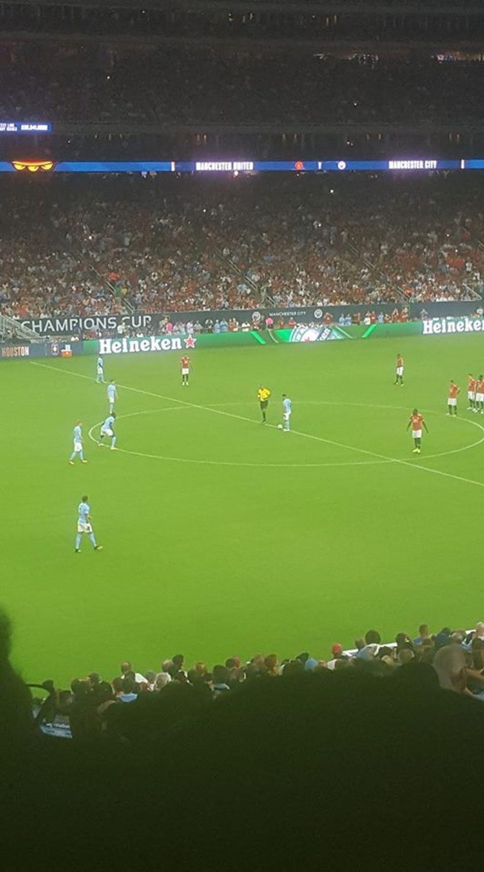 Manchester United Vs. Manchester City in the International Champions Cup Match. Two teams from Manchester England, playing in a long time rivalry match-up, for the first time ever on American soil. Literally had never ever happened before. And over in England, Manchester United games are sold out every year. I looked to see if I could get tickets to a home game in England and they were sold out all of 2017 AND 2018. So being able to see them here, in Houston, was a huge occasion.