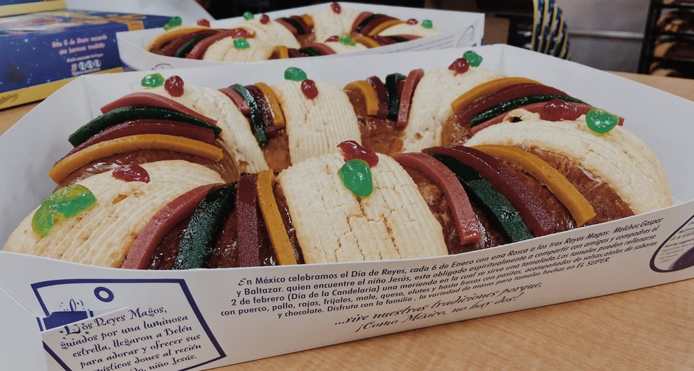 The following morning after the kids have opened their gifts, the adults prepare for the gathering to cut the Rosca de Reyes. La Rosca de Reyes is a type of sweet bread with the shape of an oval representing a crown, topped with quince and cherries.