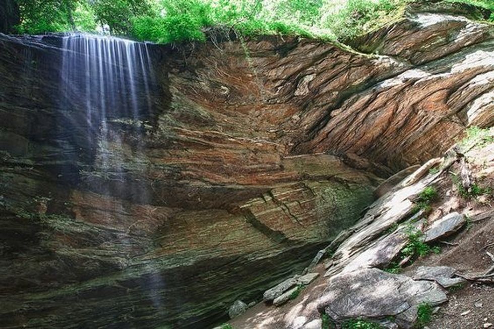 This beautiful, 50 ft free-falling waterfall is a modest one-mile hike away from Looking Glass Falls in the Pisgah National Forest. You'll pass through gorgeous moss-covered rocks and magical, lush forestry to find yourself under the hypnotic trickle of this magical spot. Set in a secluded area, these falls are one of the most underrated falls and often are considered a quiet retreat away from tourists. You'll cross a bridge over Looking Glass Creek and witness succulent wildlife on your journey to Moore Cove.