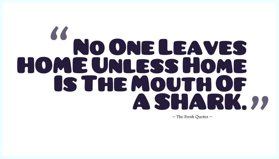 And then we have the idea of refugees, a word that has somehow taken on a negative connotation even though this nation is founded on people fleeing religious persecution. We can’t seem to conceptualize this nowadays. There are people coming here because they are running from somewhere else. Why would anyone want to leave their home, to make an often-dangerous trek, to come to a country that nowadays is not welcoming at all? This is captured perfectly in the poem ‘Home’ by Warsan Shire.