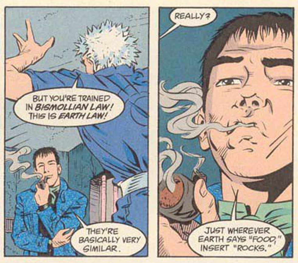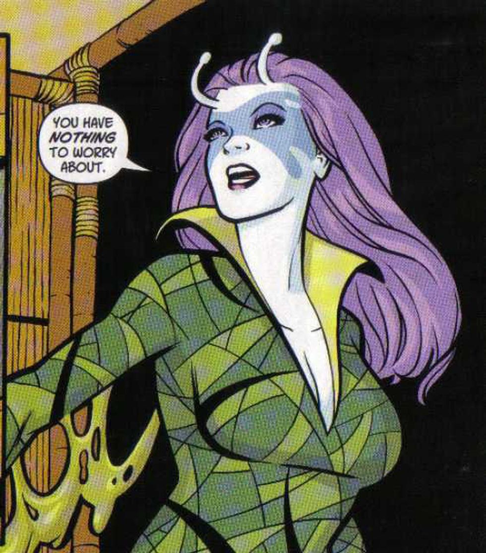 Like Matter-Eater Lad, Infectious Lass technically has the same powers as everyone from her planet--the ability to spread pathogens that live on her body and immunity to any form of biological warfare. Unfortunately, Infectious Lass often accidentally infects bystanders, meaning that she was disqualified from the Legion of Super-Heroes and was a cause of embarrassment for the Legion of Substitute Heroes, along with her friend Porcupine Pete. Her awesome purple hair and lipstick almost make up for that, though.