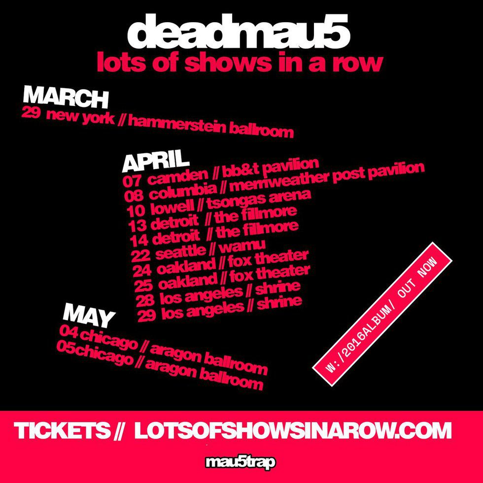 Tickets are selling out quickly and many venues have already given deadmau5 extra dates.